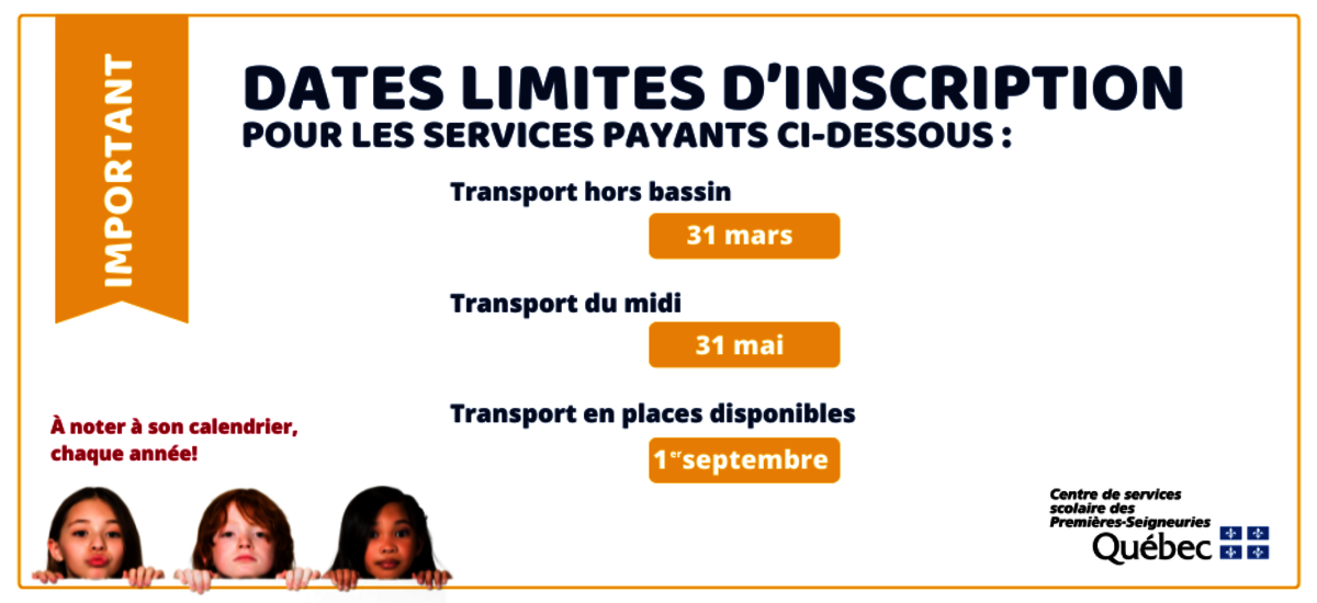 pour connaître les dates limites d'inscription et pour compléter le formulaire d'inscription.