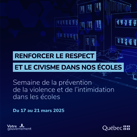 Du 17 au 21 mars, la Semaine de la prévention de la violence et de l’intimidation dans les écoles aura lieu sur le thème Renforcer le respect et le civisme dans nos écoles. Cette semaine d’activités proposée par le ministère de...